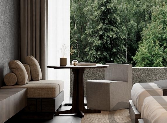 Materials: linen fabric, fire retardant foam, wood inner structure