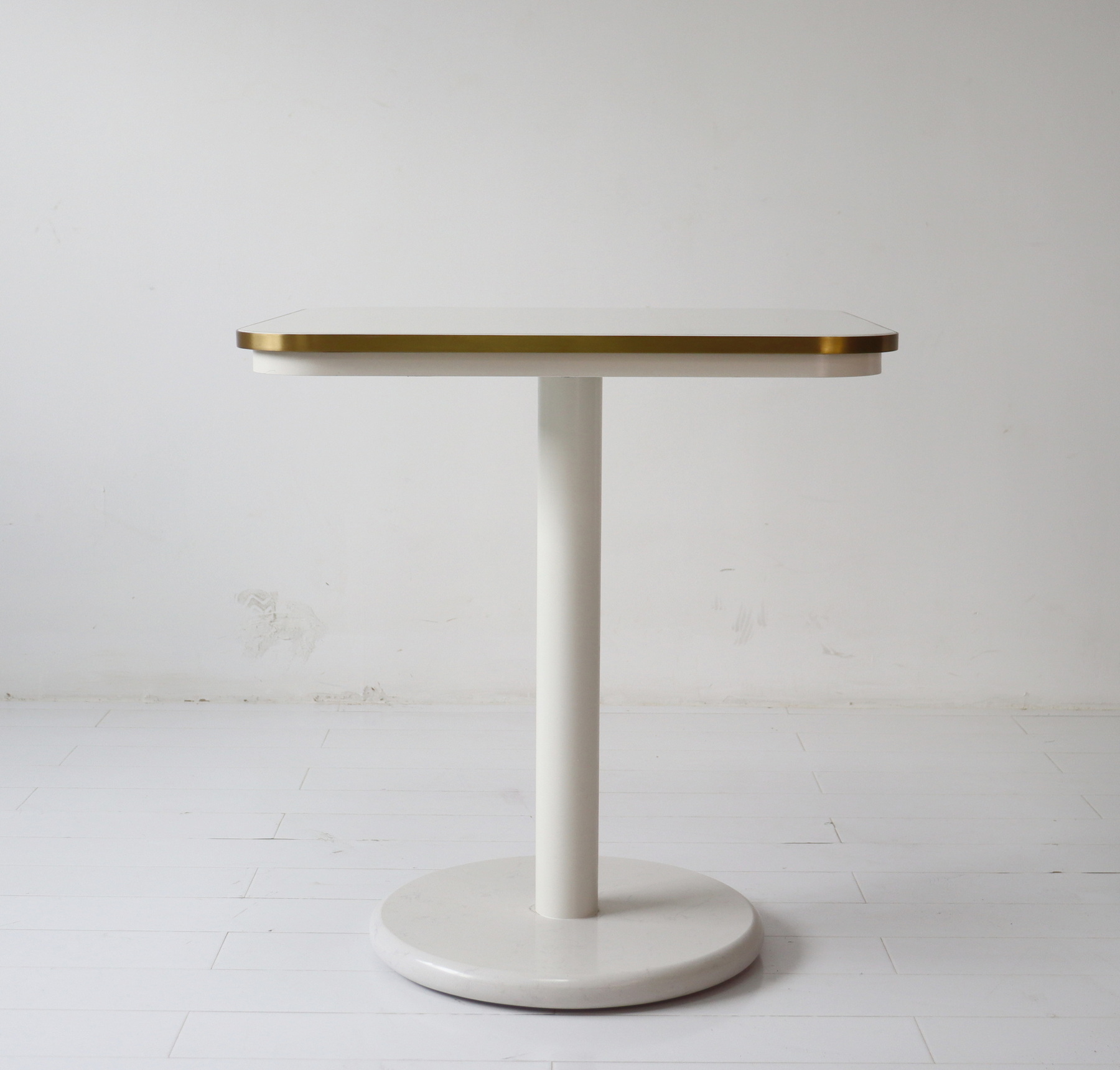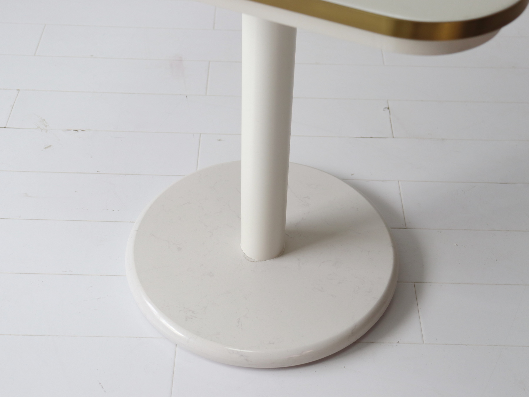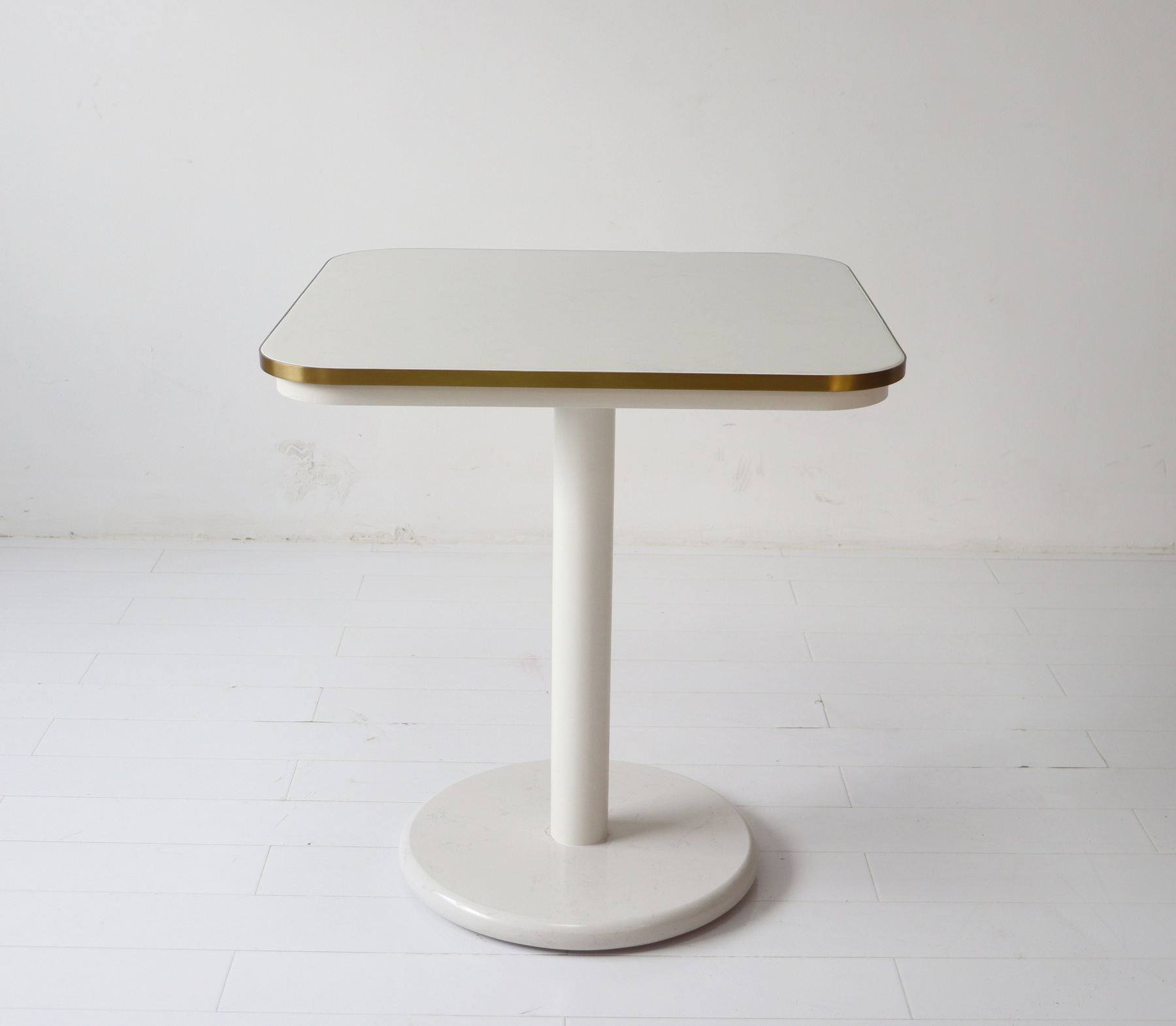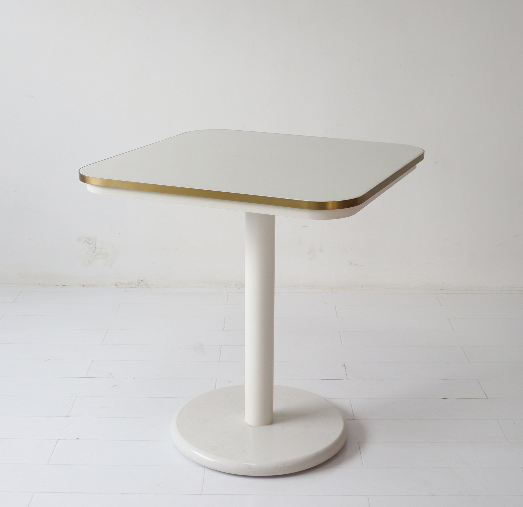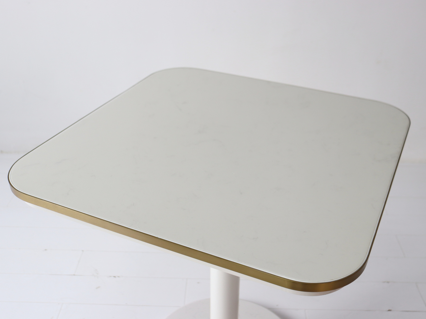Table top & bottom plate: corian with 3mm SS brushed brass frame, can be resin coating